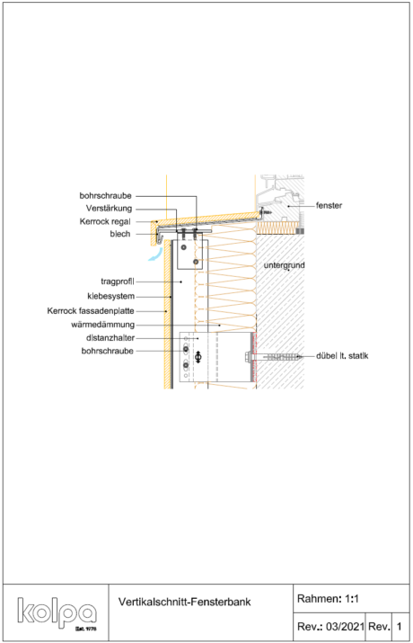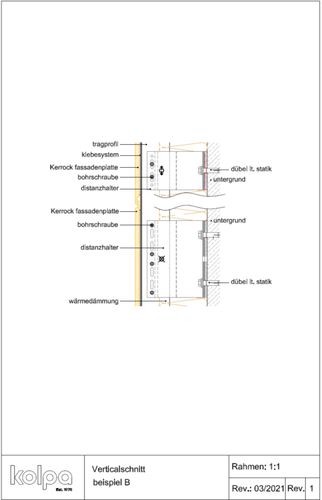 Für den Aufbau der Fassadenverkleidung von Kerrock werden Standard-Fassadenunterbausysteme aus Aluminium hergestellt, die alle statischen, baulichen und bauphysikalischen Anforderungen erfüllen.