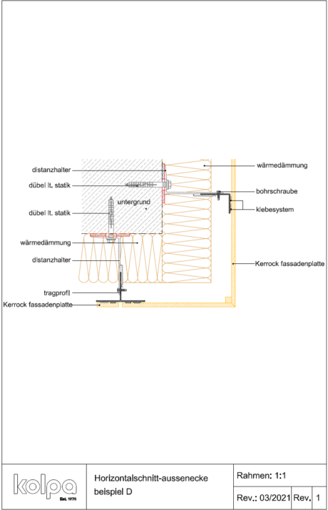 - wenn die Fassadenplatten gemäß der Anleitung zur Befestigung von Fassadenplatten von KERROCK eingebaut wurden, mit originalem geliefertem Befestigungsmaterial (Klemmen, Klebstoffe, Klebeband, …).
